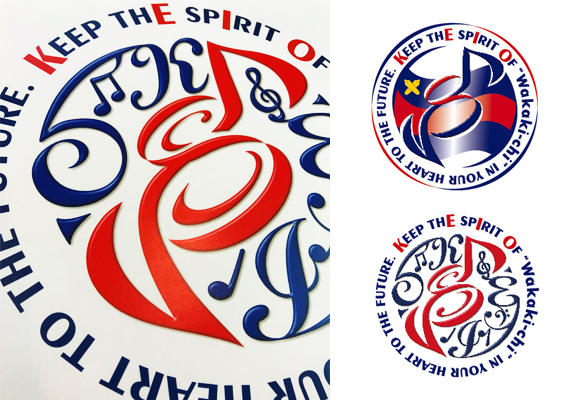 またセカンドロゴマークは、「若き血」誕生90周年を祝うこの大会が、たった1日限りの奇跡の祭であり、そこに一堂に会する歓びを表現しています。マークの中に「K・E・I・O」の文字を隠すという遊び心にあふれたデザインとなっています。