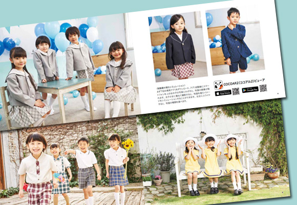 幼稚園制服・学校制服製造販売メーカー、株式会社矢部プロカッティング様の幼稚園制服ミニカタログを制作させていただきました。ARアプリを利用した制服の着せ替えシミュレーションなど、楽しさと可愛らしさのつまったカタログを目指しました。